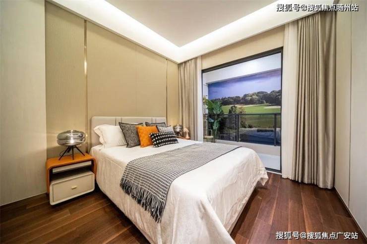 其中, 开间约3.4米的主卧,配置有独立卫生间与衣帽间,再搭配景观阳台 ,肆意阳光与徐徐清风皆揽于怀。