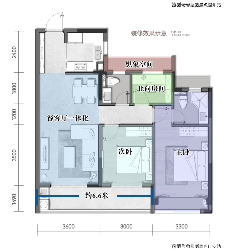 北侧的灵动空间,拓展面积大 ,功能性强,按需规划,承载更多人生阶段的不同生活场景。