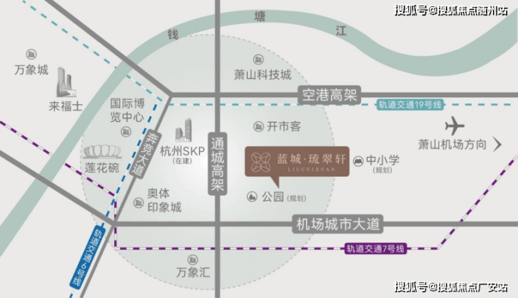 项目位于杭州市萧山区耕文路与通北路(规划)交叉口, 毗邻奥体,又与世纪城东扩的战略高地,直线距离仅约800米 ,轻松占位钱江世纪城首位度的价值外溢圈。