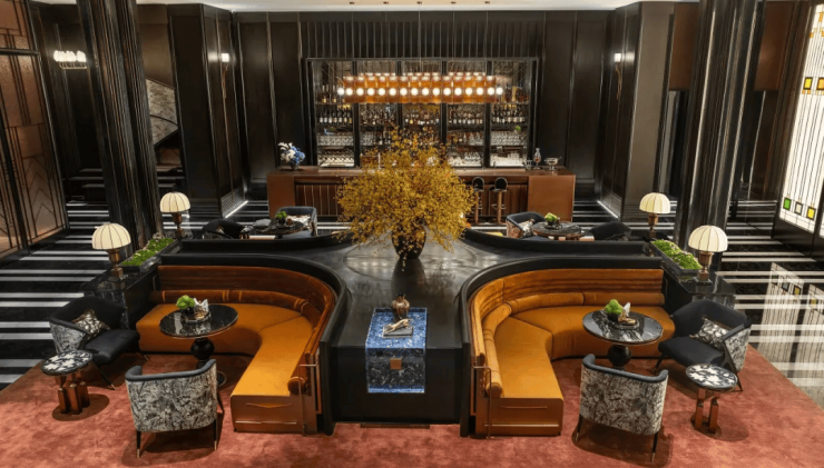 其次,项目的很多细节都融入了海派经典元素,比如落客区美轮美奂的约300㎡彩色玻璃穹顶,艺术连廊拱形廊道灵感都来自和平饭店。彩绘花窗的拱门造型则取自武康大楼。