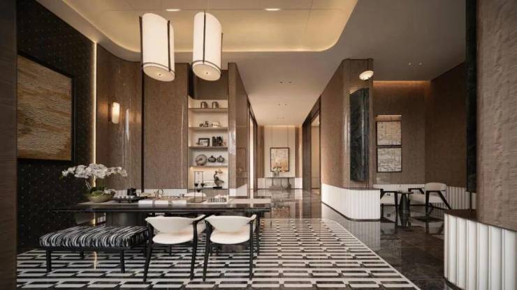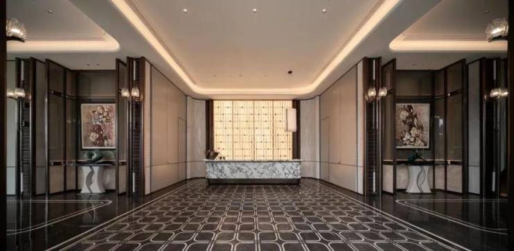 但凡看过棠悦芳华轩的朋友,会注意到项目的 入户单元门、电梯公区 等都藏着很多奢雅的细节,诸如各类岩板、石材、铝板等高浓度运用,瞬间提升了空间的档次。