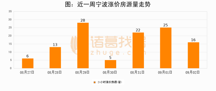 根据诸葛找房数据显示,宁波24小时涨价房源量为16套,较09月01日减少9套,环比下降36%。与此同时,涨价房源占比小幅回落,对于购房者来说是一个入市窗口期,购房者可抓住时机入市。