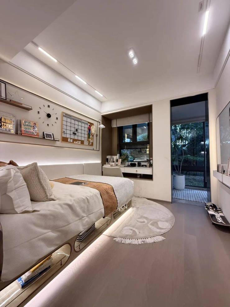 项目在高配置的基础上,还打造了6大智能化空间细节,包括客餐厅智能灯光控制、玄关天花感应灯、USB插座点位预留、感应夜灯、电动窗帘插座预留(客厅及主卧)、智能安防一键报警系统等。