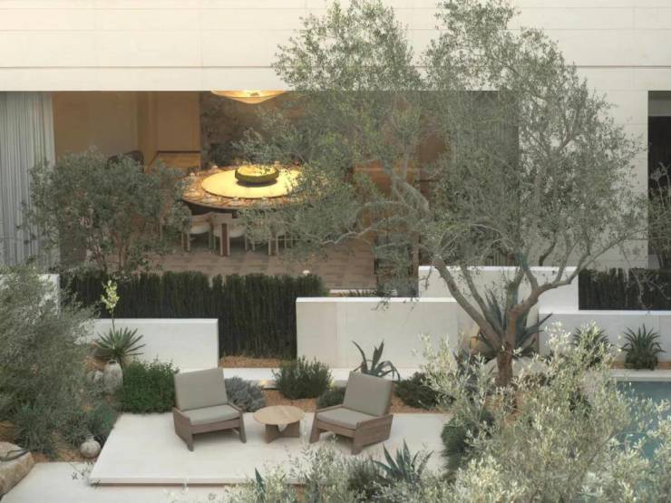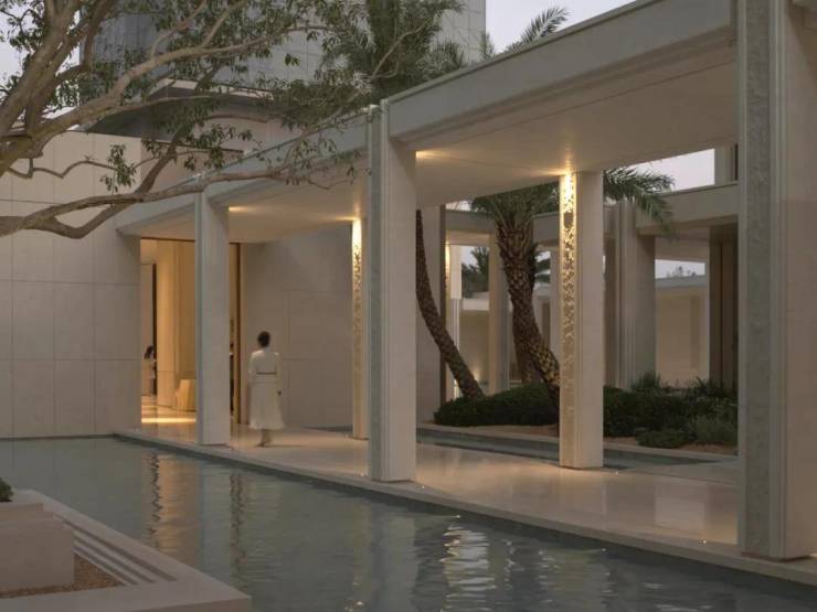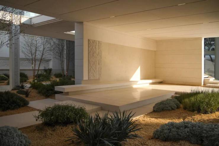 它将行政酒廊与砾石花园自然衔接,又以无边观景平台延展至下层会客空间,营造出纯净而优雅的高差漫游体验,让行进的每一步皆成风景的延续。