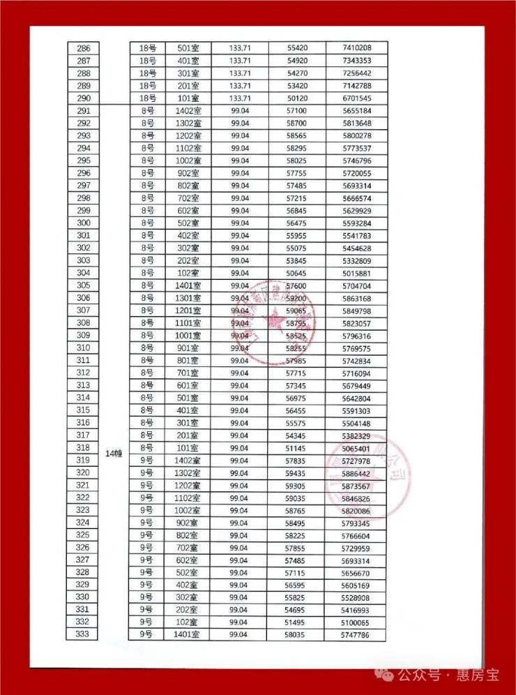 在售户型面积、单价、总价(尾盘现房,一房一价)
