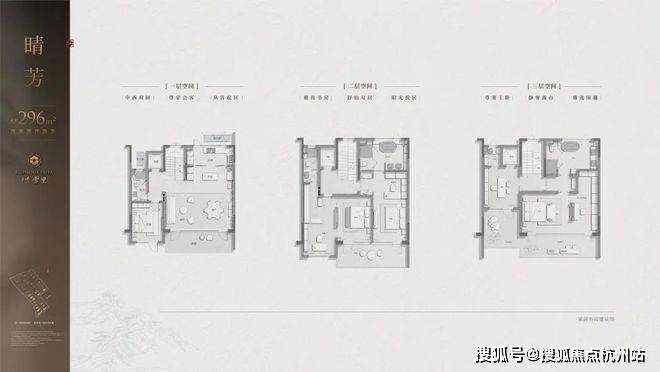 中间套300㎡地上三层双主卧套房设计,每间卧室连通露台或庭院;L型景观面实现“移步异景”。边套340㎡顶层阳光房与私家电梯入户,主卧独占整层,躺瞰超山梅花盛放,地下室可拓展为私人艺术馆。