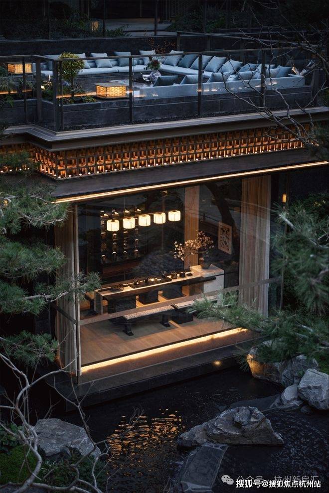 细看,还有歇山重檐、纳福悬鱼、黛墨青瓦、瘦金披檐等元素的点缀,这样的立面设计,将东方建筑之气韵、有形之光影,完美融合。如此超凡的建筑美学,在熙熙攘攘、繁华的杭州城,是独一份的。
