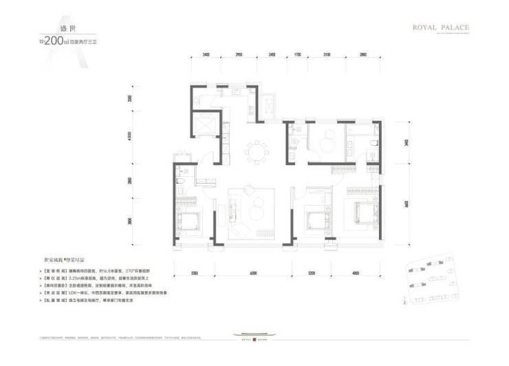 200㎡四居(四面宽南向):约16.8米奢阔面宽,6.3米横厅打造流动情感剧场;南向双套房设计,每个居室面宽≥3.1米,起居互不干扰;独立家政间符合人体工学,全落地窗带来IMAX级采光观景体验。