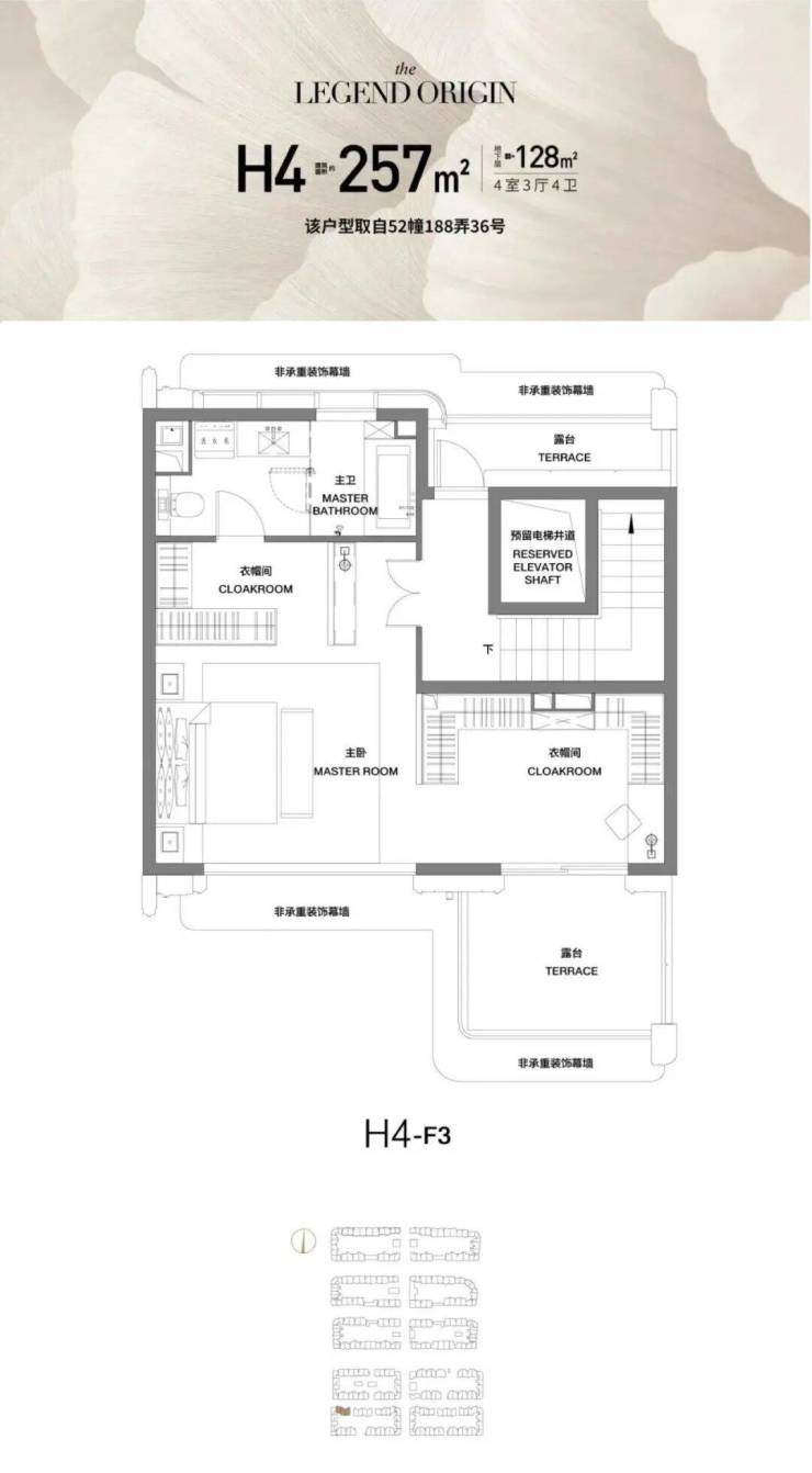 三楼主人层:媲美五星级酒店行政套房的顶层空间,以“超大衣帽间+休息区+四分离卫浴+露台观景区”进阶主人至高享乐。移步环幕露台,无可复制的多面瞰景视界,将百年街区胜景与自然诗意私藏。