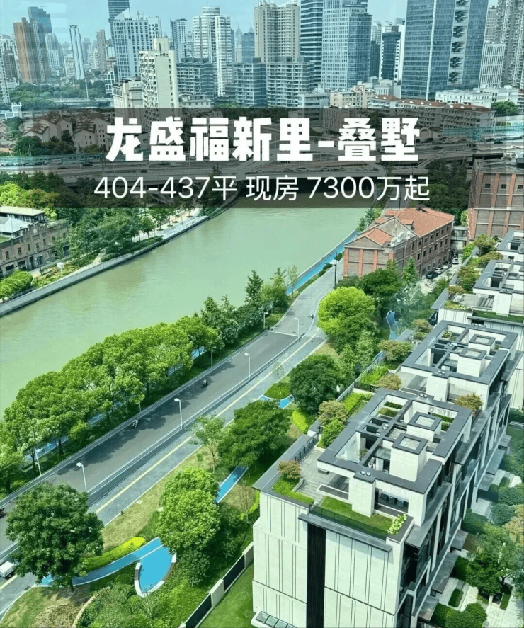 静安内环内苏州河畔 苏河湾板块「龙盛福新里少量面积402-410㎡叠墅;赠送地下室、花园等 产证约600㎡+;总价7300万-8800万-1.2亿;现房交付;TOP系列国际都会大宅让世界重回苏河;启幕全球卓越城市的崭新人居封面!