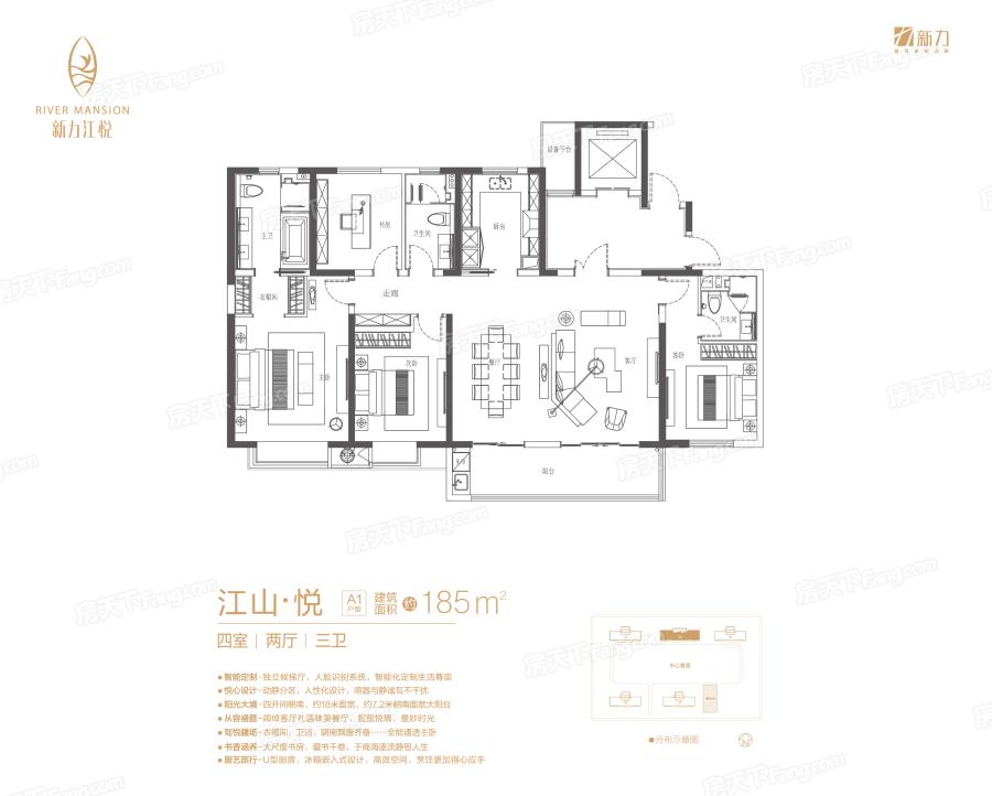 新力江悦,九龙湖滨江悦境藏品,位于九龙湖景德镇街与雅瑶路交汇处,踞赣江南大道、祥云大道、枫生高速、南昌绕城高速等多条主干道环绕,周边更有西客站、国体中心、万达文化旅游城、国际博览中心、外国语学校等各类重量级资源配套。占地面积约25.5亩,总建面积近5.6万平方米,由5栋高层组成,于经典之上匠心研磨雕琢,铸悦系新锐作品。社区内绿化率达35%,秉承新亚洲风格园林布局,畅享阔绰尺度人生,建筑面积约143㎡-185㎡悦江平层,坐揽一江盛景,大空间、大尺度规划,内部配备中央空调、地暖、新风系统等,均采大品牌,尽显悦系奢阔之美。社区内园林采用软质种植,融入四季斑斓,跟随季节的不同全冠移植不同季节的植被,形成“春花、夏荫、秋叶、冬枝”四季主题景致,满园秀色四时不败,不同的景观设计,最终形成园林“一步一景,移步异景”的奇妙之境,让业主享受返璞归真的健康生活方式,回家即是一场穿越四季的旅行,演绎轻度假的生活概念。