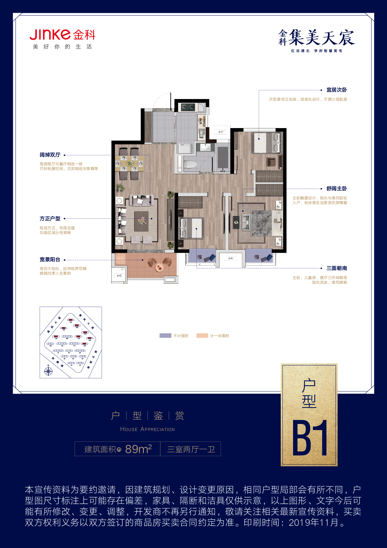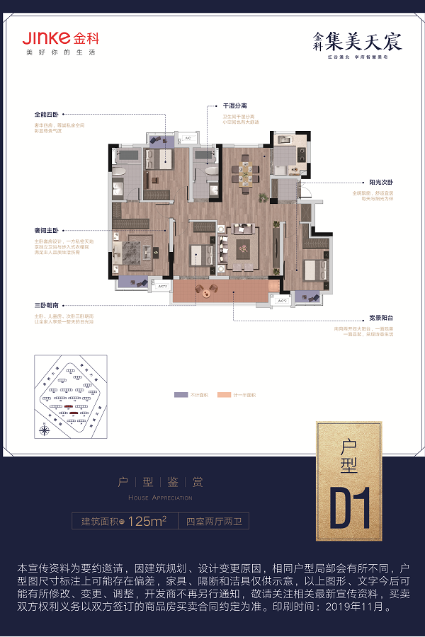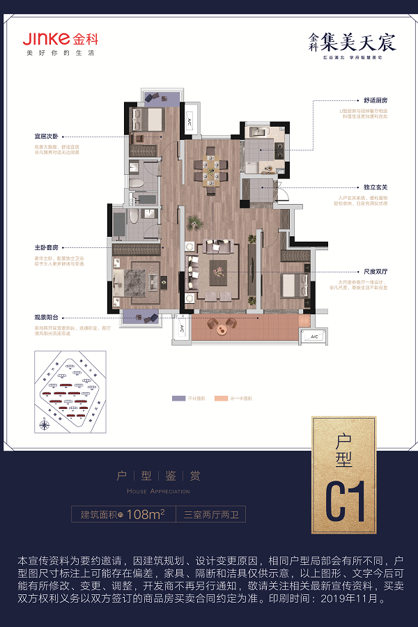 金科集美天宸项目占地约7.6万方,总建面约22万方,容积率2.20,绿化率30%,合计房源1560套。项目由8栋高层、12栋洋房、1栋幼儿园以及住宅下侧的沿街商铺组成,其中高层面积98-108㎡,洋房面积108-125㎡。