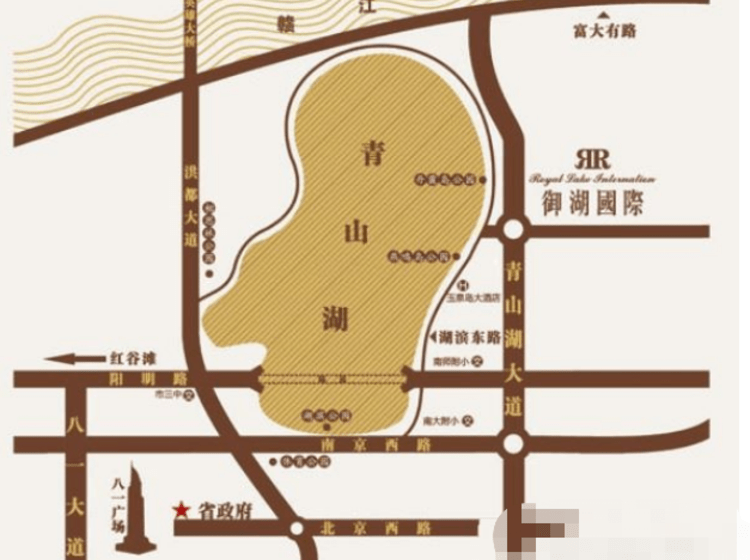 【御湖国际】位于青山湖大道(香溢花城对面),地段,青山湖周边,豪宅林立,西面距离青山湖只有100余米。东临城市绿肺天然氧吧艾溪湖湿地公园,等10余座广场公园。近地铁四号线、5号线(已规划),交通非常便利。周边就有恒茂梦时代、天虹商场,7大银行2大菜场等等。幼儿园、南师附小幼儿园、南师附小香溢花城校区、南昌十五中青山湖校区、南昌三中高中部、名校江科附小、附中等,教育资源优厚。