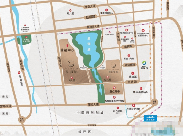 赣江星城总占地368亩,总建面42.71万㎡,总投资规模30亿元。商业和住宅占地368亩,建面 约39万㎡(其中中医药文化小镇占地106亩,建面约7万㎡)。中学占地56亩,建面约3万㎡。立足于优越的区域占位和星海湖畔的占位,项目至力于产城配套服务,全龄一站式全方位配套服务,打造高品质的滨湖人居标杆产品。