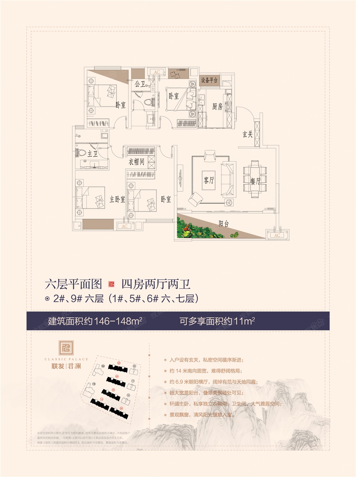 4室2厅2卫-洋房1#、2#、5#、6#、9#(6-7层)146-148平