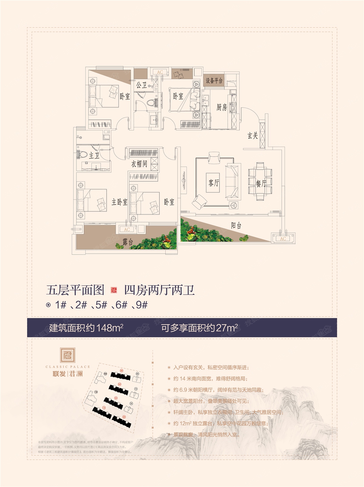4室2厅2卫-洋房1#、2#、5#、6#、9#五层148平