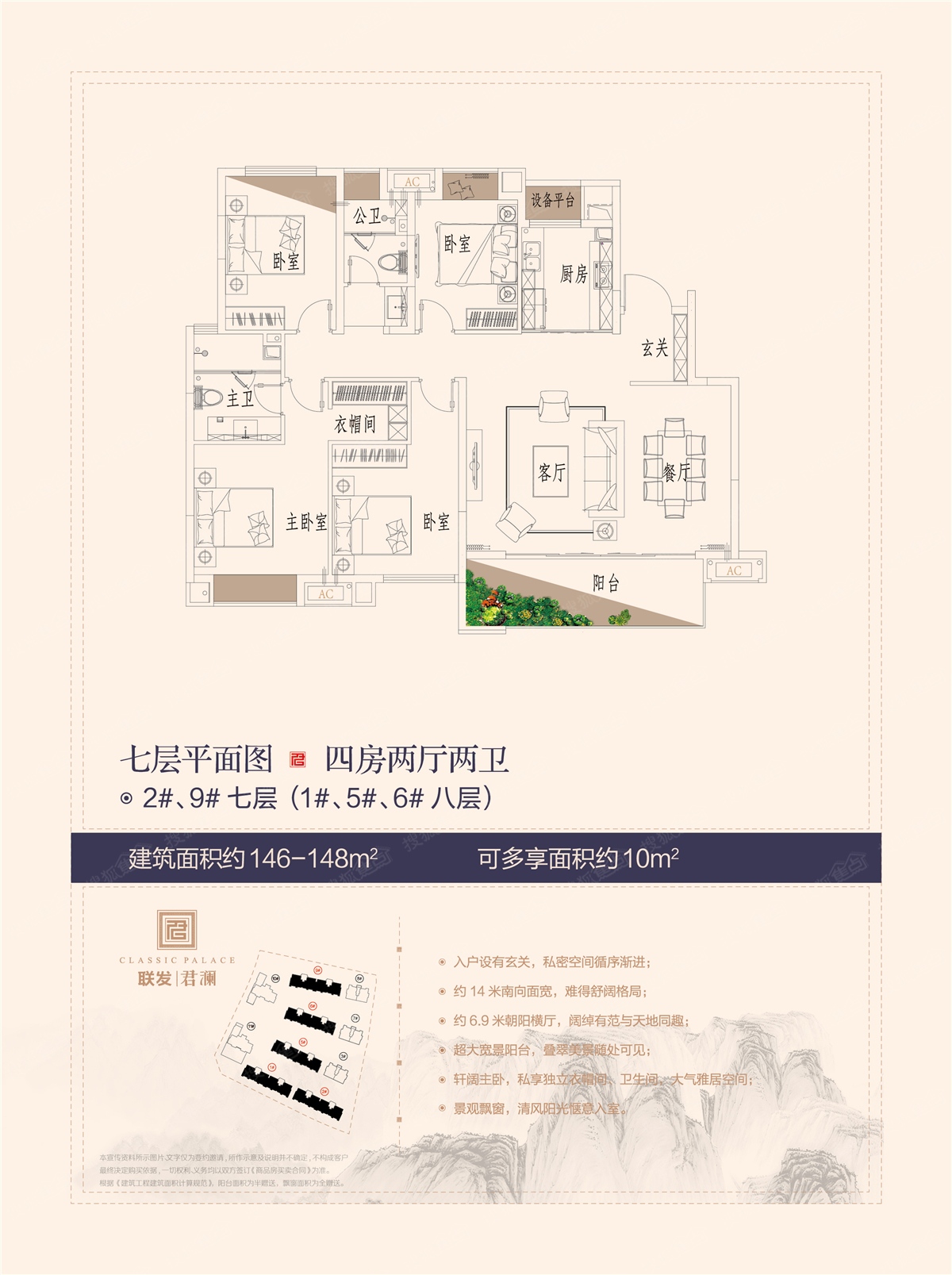 4室2厅2卫-洋房1#、2#、5#、6#、9#七层八层146-148平