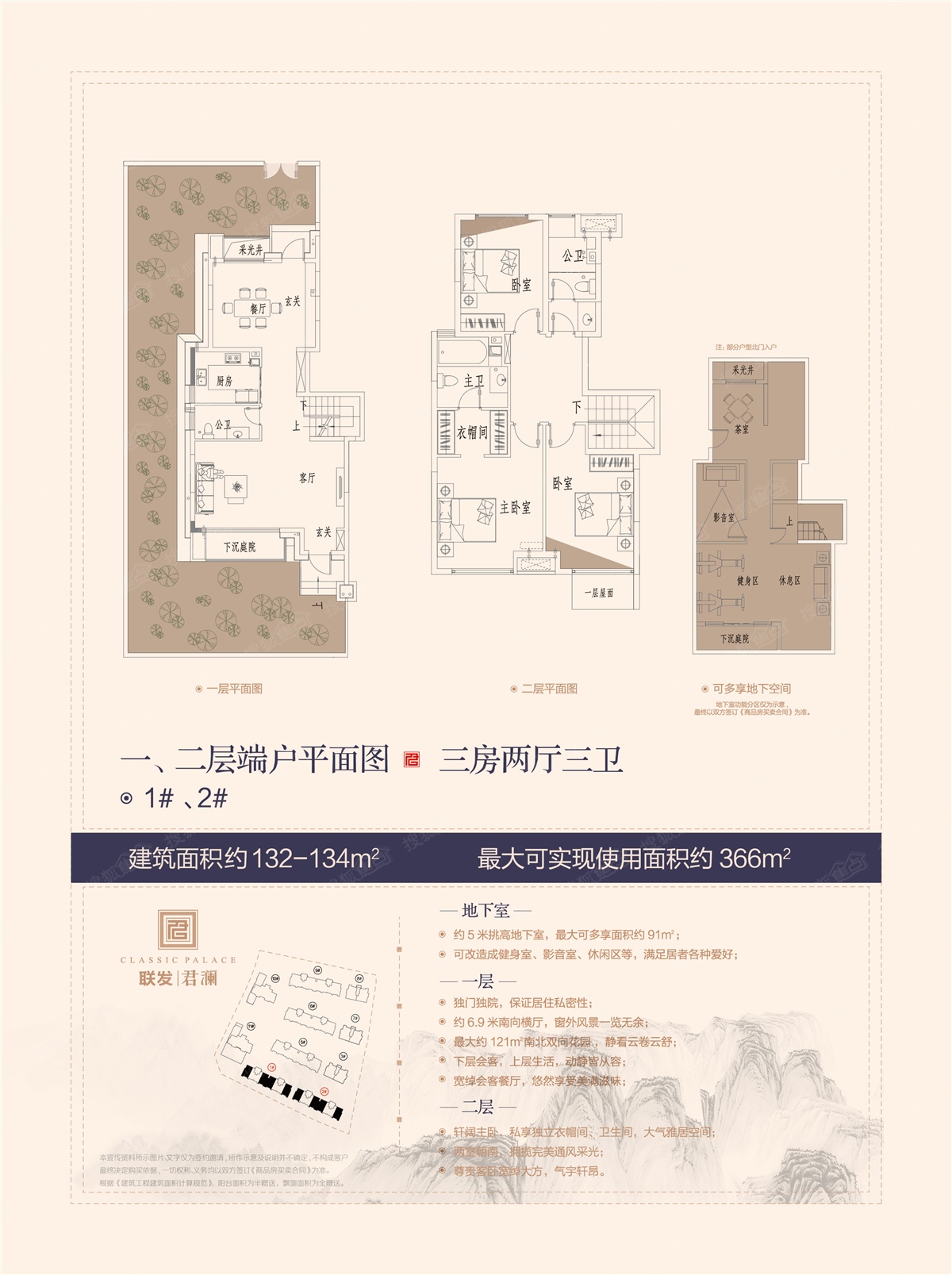 3室2厅3卫-洋房1#、2#一层二层端户132-134平