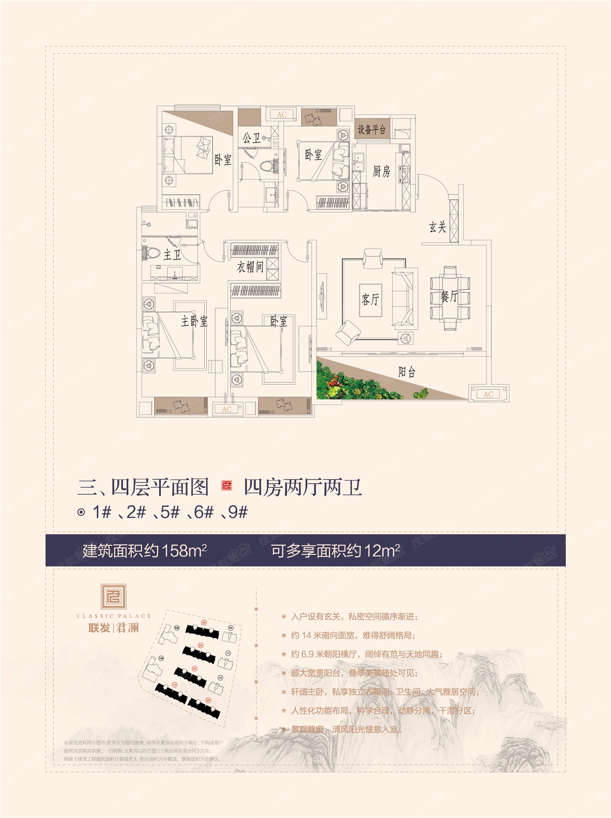 4室2厅2卫-洋房1#、2#、5#、6#、9#三层四层158平