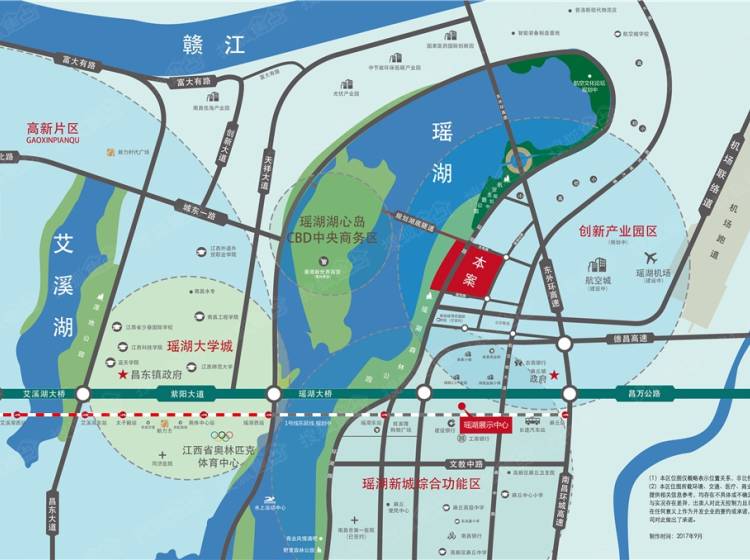 新力公园壹号由新力开发,项目位于高新区瑶湖东岸,东至航空路,南至规划路,西至环湖路、北至光电路。项目东临航空城,紧挨跨湖隧道(规划中),距离高新管委会车程约25分钟,距离昌北机场车程约30分钟,距离八一广场车程约35分钟,距离南昌市政府车程约45分钟。