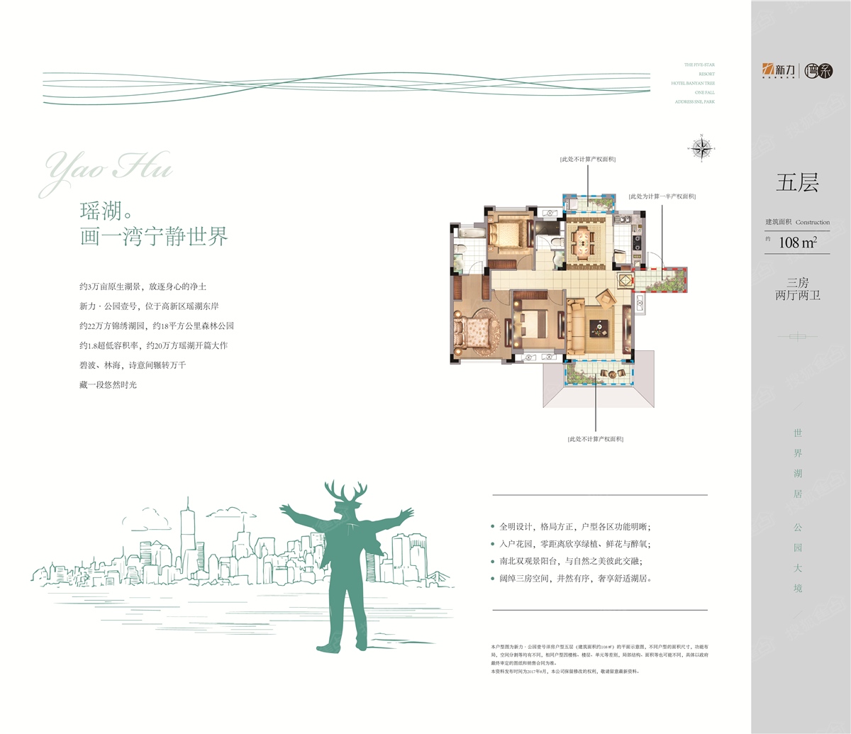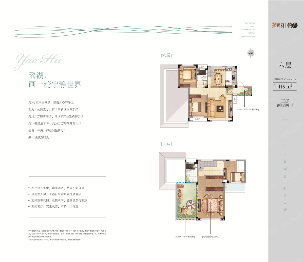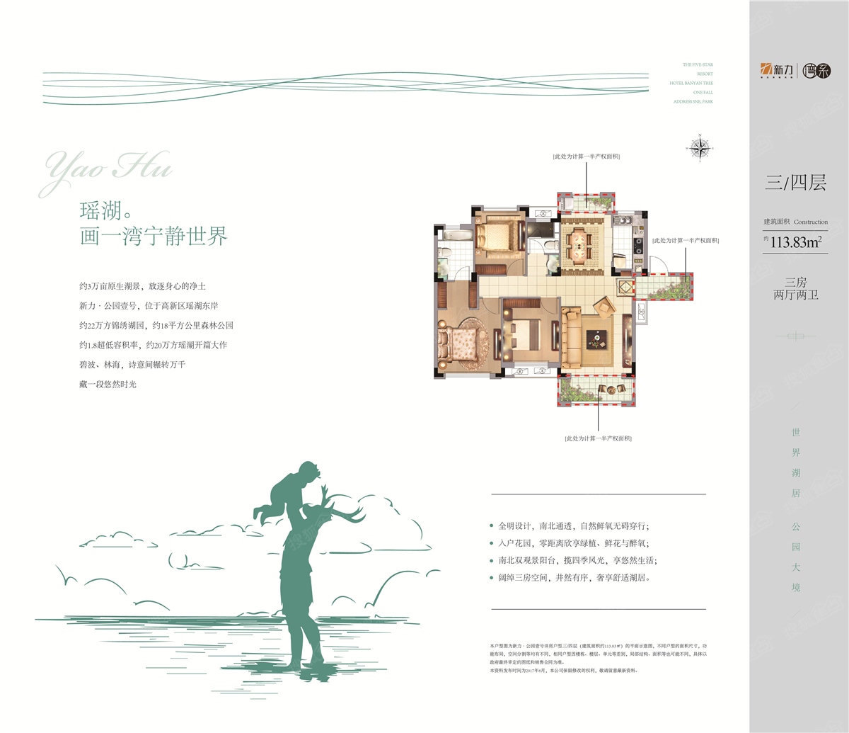 新力公园壹号商住占地170亩,总建筑面积约263168.45平米,由湖景精装高层、墅境洋房、办公、酒店式公寓、沿街商业等产品组成,规划户数约1425户,容积率为1.8;项目为湖景生态住宅,开窗既看湖。