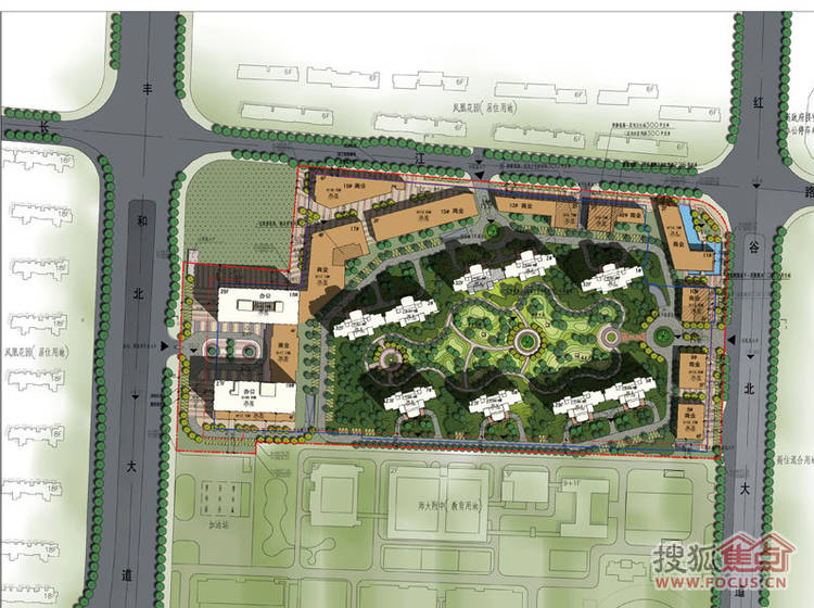 办公、中央景观花园、旗舰商业、文化活动站
