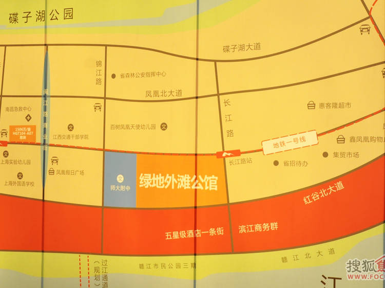 绿地外滩公馆位于南昌凤凰洲(凤凰洲大道与长江路交汇处),项目用地面积76997.16平方米,总建筑面积约29万平方米,容积率2.9.项目业态涵盖7栋高层、约4万平方米集中商业、1栋国际写字楼、1栋酒店式公寓,是拥有一站式综合配套项目。项目周边拥有8大旗舰商业、3座湿地公园、7所全程名校。江西师大附中凤凰洲校区仅一墙之隔,1号线长江路地铁口。是绿地继中央广场、新都会后,第三座地铁上盖地标。