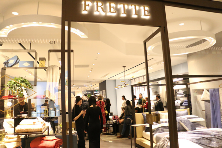 FRETTE上海旗舰店位于设计时尚高端品牌的圣地——恒隆广场。总面积达230 平方米,店面风格以精致繁复的国际度假胜地为灵感,精致优雅而且极具现代感,诠释了FRETTE一直倡导的“给所有消费者提供一个可以休息、舒适和家的感觉的体验”的核心理念。