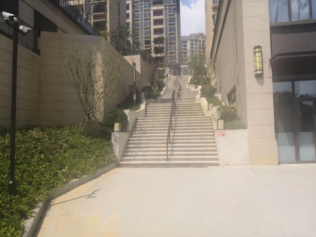 最让整个小区业主生气的是,每天回家要走一个“天梯”,这是小区少有开放的人形步道,居民需要步行70多个台阶才能进去小区,且每个台阶的高度比一般楼梯的高度高很多。业主们自嘲:下班回家都得“爬个山”,你怕了吗?