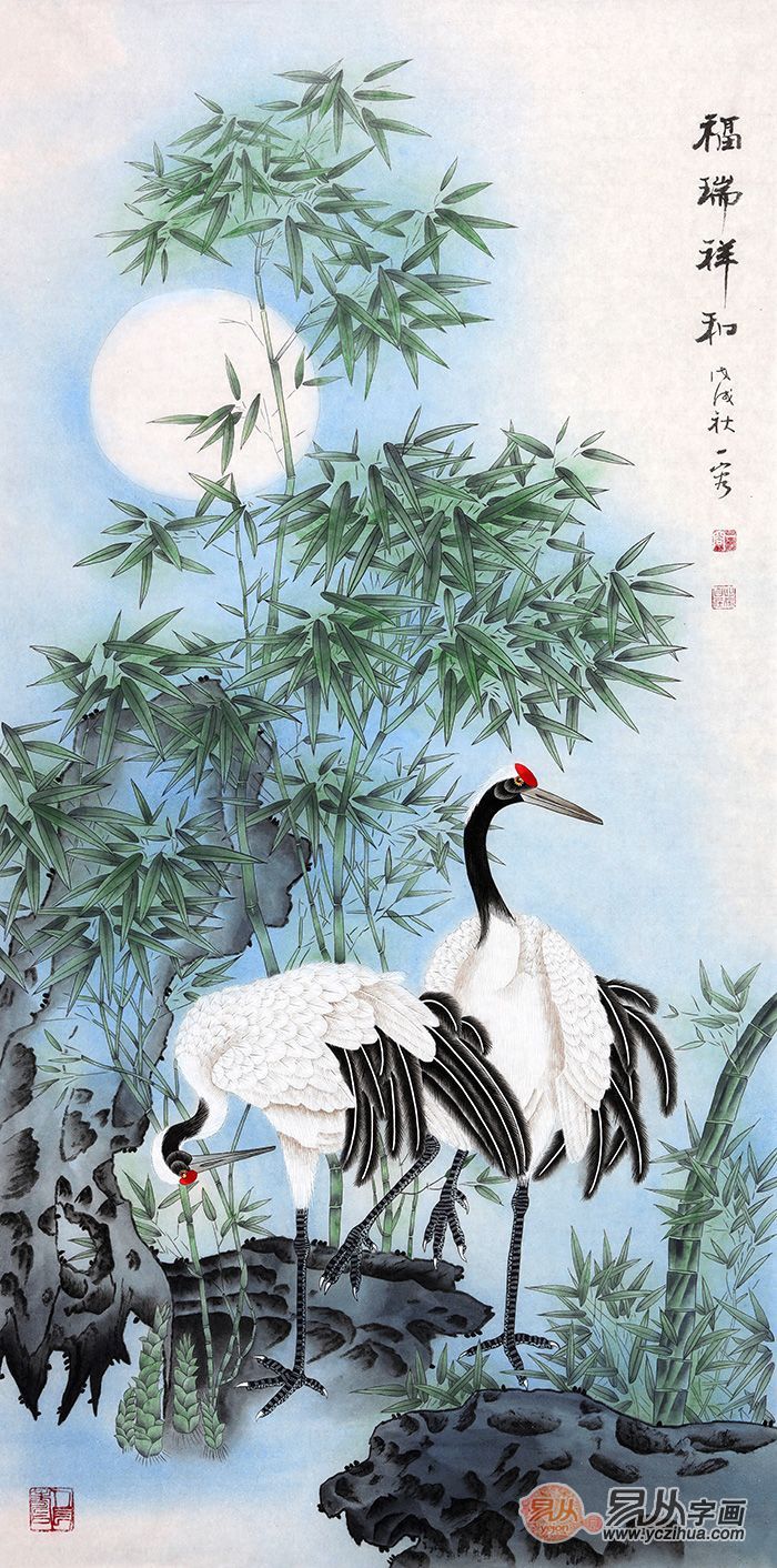 王一容较新构图竹子仙鹤图《福瑞祥和》
