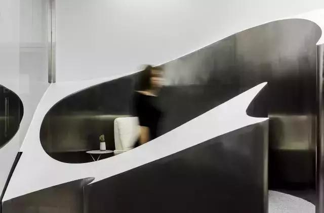整个山丘使用1.5mm厚拉丝不锈钢板焊接而成,拉丝不锈钢板与灰色地毯地面软硬结合,强化灰色调的山洞空间。而山丘顶部喷成白色与周边墙面和光亮的屋顶连成一体。屋顶采用软膜天花,软膜表面印刷有不同密度的花朵图案,使室内光均匀而富于变化。站在商场里,你可以由通透的玻璃墙直观感受到美甲店鲜明的视觉形象。当你走入其间,这座抽象的“山丘”就成为演绎自然之美的舞台。