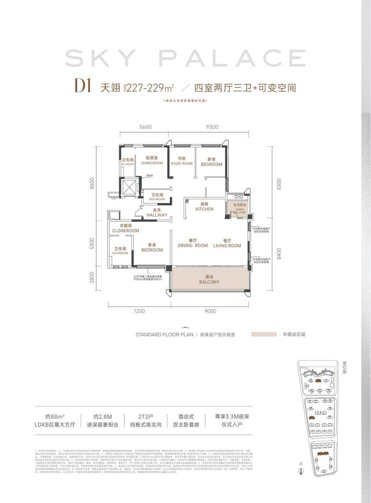 D1 – 天翊(建面约227-229㎡ 四室两厅三卫+可变空间)