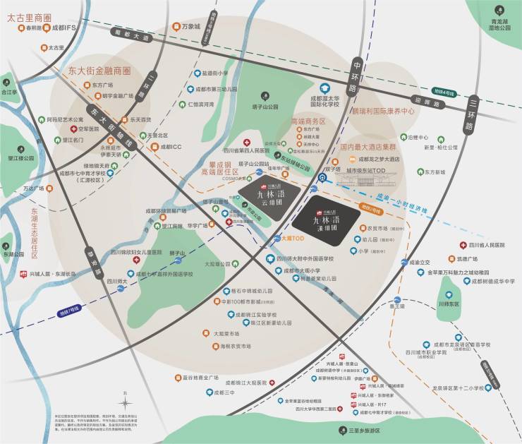 项目位于地位于四川省成都市成华区,地处东 2.5 环优质区位,主城稀缺的大范围待开发区域,作为“东进首发位,中优核心区”的位置,在政策、资源等各种条件的倾斜下,城东的未来将不可估量。项目旁的三条主干道:中环路、成龙路、东大街-驿都大道、蜀都大道,未来整个城市最繁华的商业汇集于此,形成城市黄金“金三角”,超甲级写字楼、五星级酒店和外企500强。
