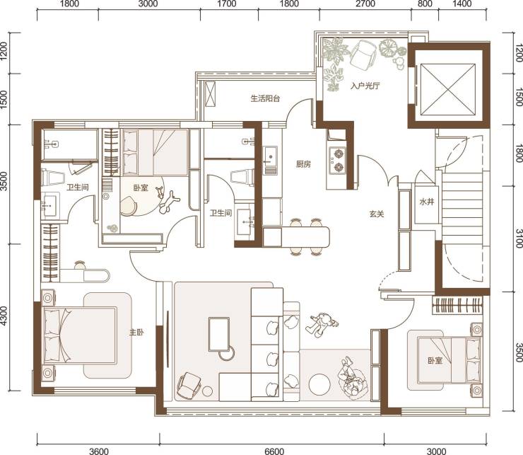【宽境采光】13.2米四面宽奢阔采光面,南北通透