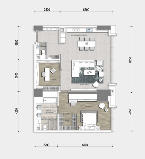 精装豪配,最大景观面,最大衣帽间,可容纳77双高跟鞋、大小行李箱分区放置等最精致化人性化的柜体收纳系统,打造极致巅峰生活体验