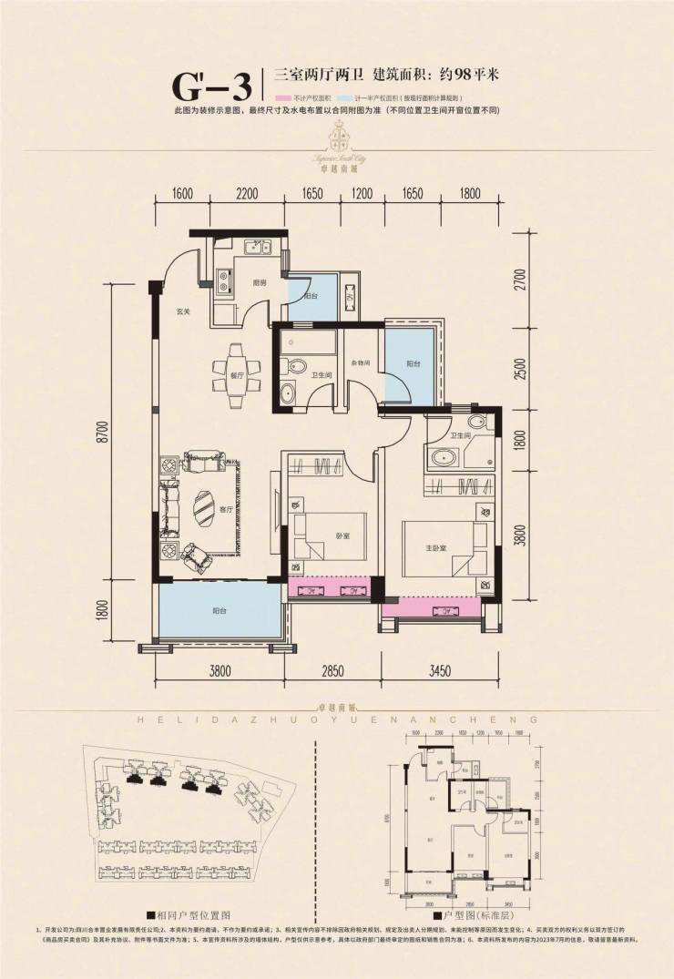 高层:89-98-115 平米套三双卫;119 平米四房双卫