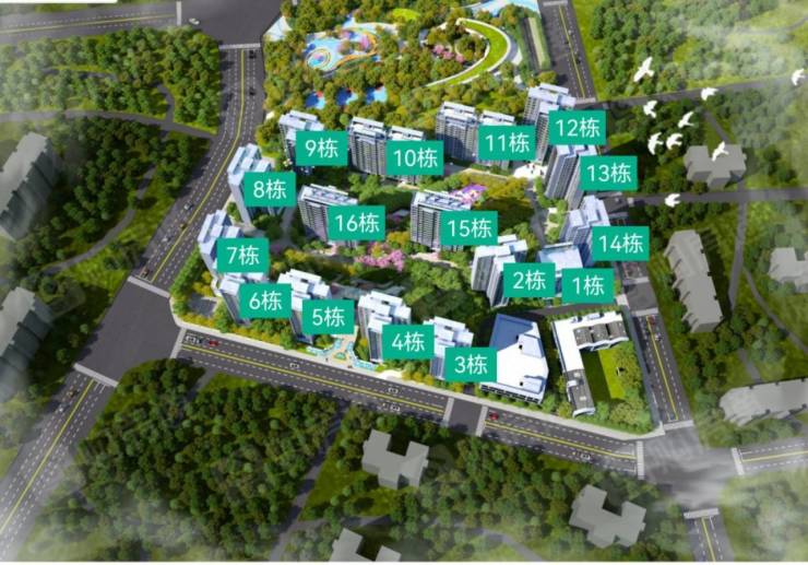 整个小区呈围合式布局,中庭15#、16#楼两座“楼王”被前后双中庭环抱、景观视野最佳。