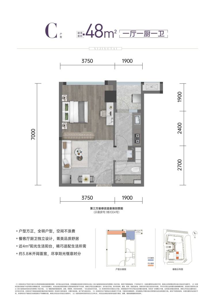 户型分布:1#楼约48㎡(标间)、约56㎡(标间)、约68㎡(套一)三个户型;2#楼约46㎡(套一)、约53㎡(套一)、约60㎡(标间)三个户型。(具体户型及分布见楼层平面图)