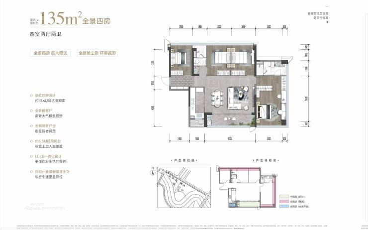 2、功能性升级:135-143平米,四房双卫起步,整体生活空间,匹配豪宅基底;