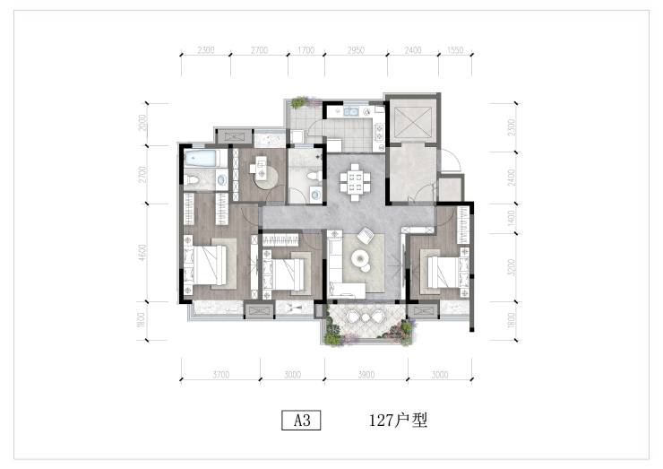 面积段:小高层127-143-152㎡,叠墅180-210-306㎡