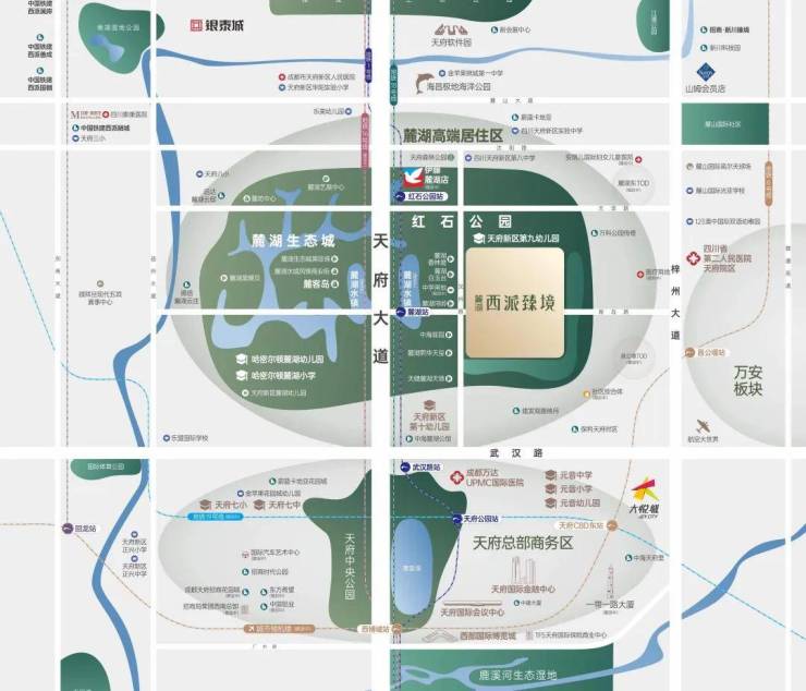 楼盘还要看产品、地段、价格。麓湖西派瑧境属于麓湖公园区,属于天府新区四大核心之一,分别是:麓湖湖区、麓湖公园区、天东、天西。项目正处于公园区相对中心的位置。1号线麓湖地铁站。周边有麓湖伊藤天府GMS店和隐溪川14万㎡商业,预计将在2025年开业。