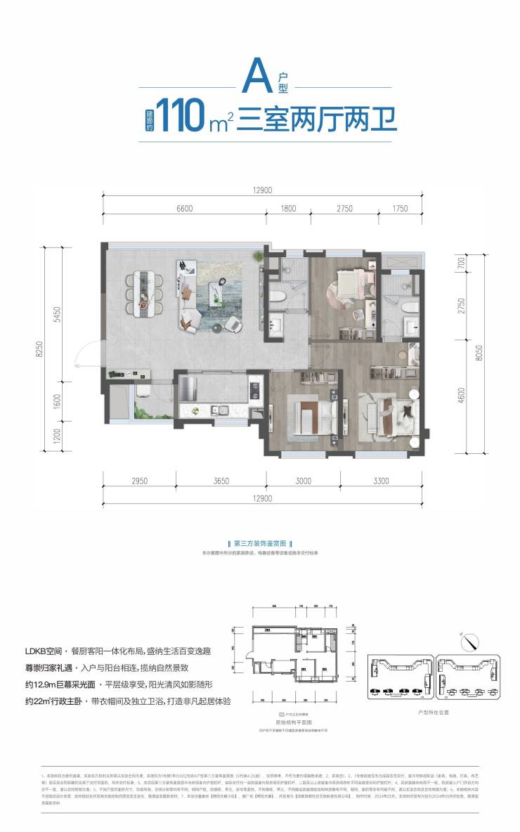面积区间:建面约94-110㎡新派臻装三居
