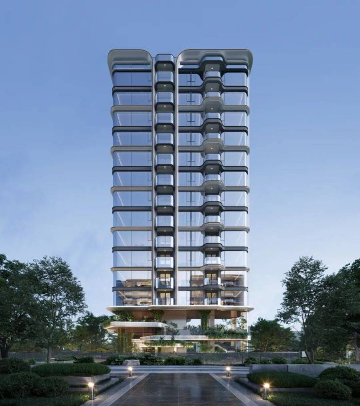 外立面:铝板 + 陶瓷板 + 玻璃 “钛晶级” 三重材质,现代流线 “云端建筑”