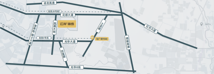 项目位于成都市温江区,地处温江区和青羊区交界处,距地铁4号线马厂坝TOD约1.3公里,毗邻青羊新城中心生活圈。