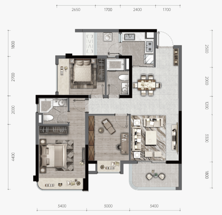 A户型 建面约103㎡ 三室两厅两卫