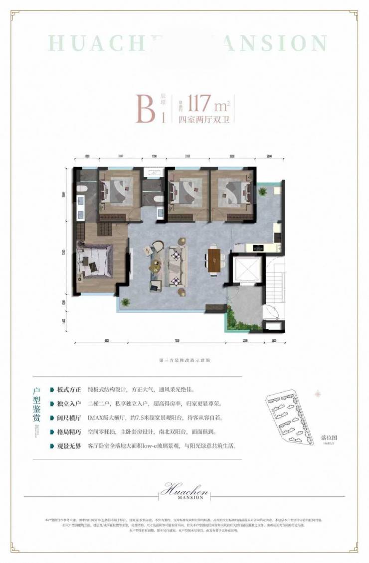 建面117㎡四房双卫实得约141㎡;建面约127㎡四房双卫实得约161㎡,