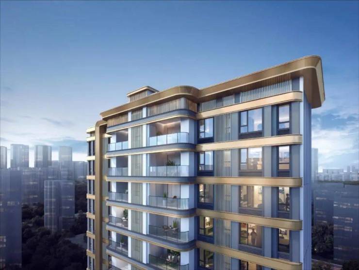 现代化极简艺术立面,采用了轻透玻璃与简雅铝板,体现当代都市化的精致美学。除此之外,项目还不惜成本,在玻璃幕墙转折处做圆弧切角,平折转换流畅自然,以独有的圆润之美,展现符合改善主义的高颜值建筑体。