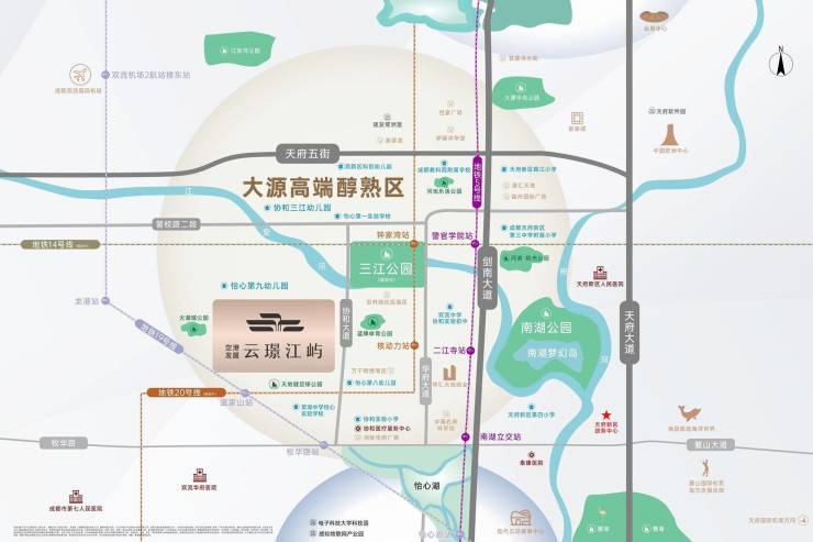 大源南作为城南高品质生活的代表板块——大源向南蝶变延伸出的大源2.0,上承大源下启怡心湖片区,处于两大价值板块的联结地带,共享两大板块丰厚资源,具备优越的地域优势。同时,历经近几年高速发展,其交通、教育、生态等配套早已醇熟,依托大源板块崛起的大源南,自起步之日就站上了C位。