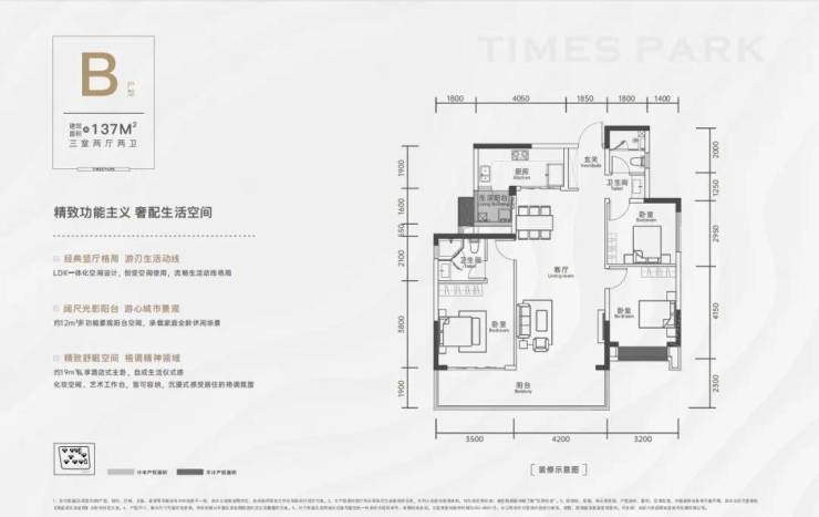 这个户型招商时代公园787亩大城的入门级户型,但依然做到大尺度的宽厅视野面。