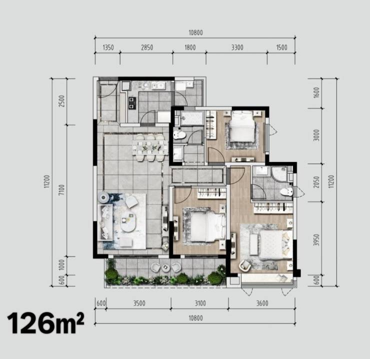 【产品面积】126-144㎡